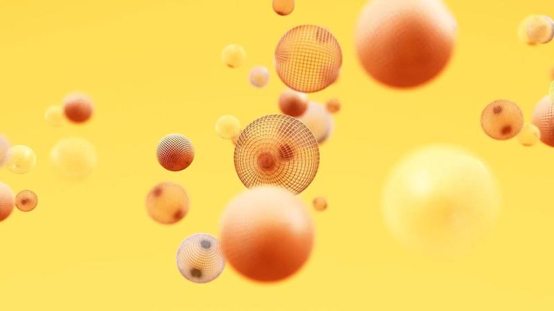 abstrakter Hintergrund mit dynamischen 3D-Kugeln Gelbe Blasen 3D-Rendering Schleifenanimation Pro Video