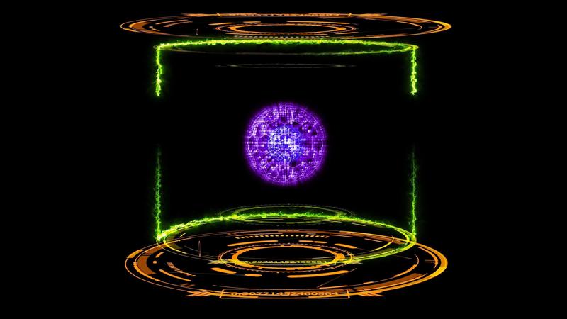 Quantenfuturistischer Computer abstrakte Blaulichtkugelkugelkernvisualisierung in digitaler Laborkapsel mit Donnerenergie Kostenloses Video