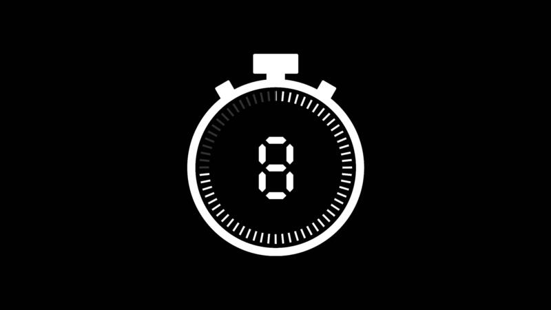 10 zweite Countdown Timer Animation von 10 zu 0 Sekunden. modern Weiß Stoppuhr Countdown Timer auf schwarz Hintergrund Pro Video