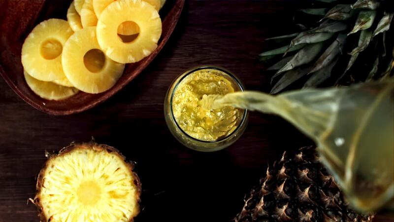 Ananas Saft ist gegossen in ein Glas. gefilmt ist schleppend Bewegung 1000 fps. hoch Qualität fullhd Aufnahmen Pro Video