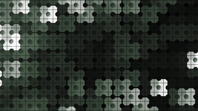 abstrakt Hintergrund geteilt durch eng schwarz Linien in klein Quadrate mit Kreise im das Mitte von jeder Quadrat. Bewegung. blinkend Schatten von Fliesen Über geometrisch Muster. Pro Video
