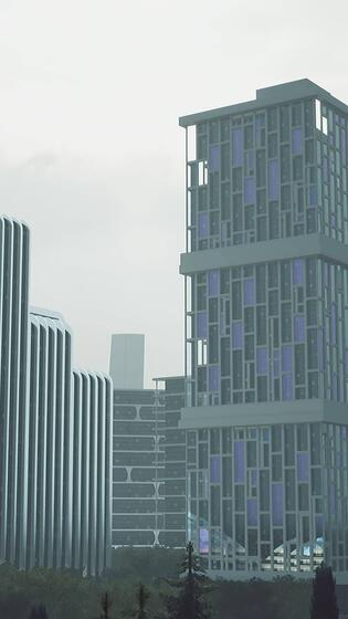 futuristisch Stadtbild mit hoch Gebäude Pro Video