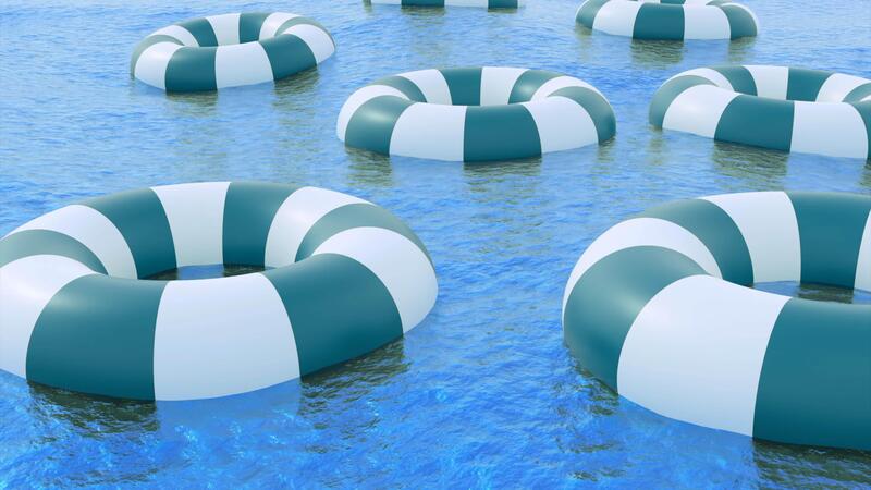 Elemente von Rettung im das Wasser. Design. ein Ruhe Meer mit klein Rettungsringe ist gemacht im Computer Grafik. Pro Video