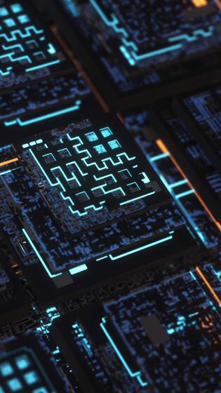 Neon- Bretter im Computer. Animation. schön 3d Neon- Bretter im Computer Cyber Raum. beleuchtet Erinnerung Karten Innerhalb Computer Pro Video