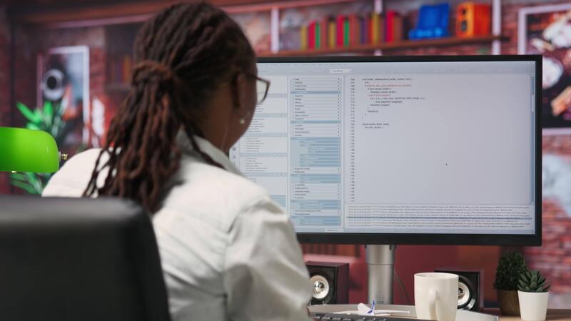 enttäuscht Ingenieur im Zuhause Büro suchen beim ui auf Computer Monitor, Versagen zu richtig ausführen Programmierung Code. unzufrieden es Arbeiter Sehen Fehler während mit Codierung Anwendung, Kamera b Pro Video