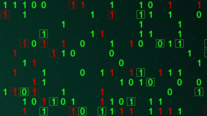 Grün glühend binär Matrix auf ein Netz. Textur Animation, horizontal Komposition. Technologie Bewegung Grafik. Pro Video