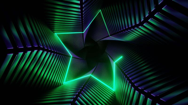 Türkis und lila Neon- Star Spiral- Tunnel Hintergrund vj Schleife im 4k Kostenloses Video