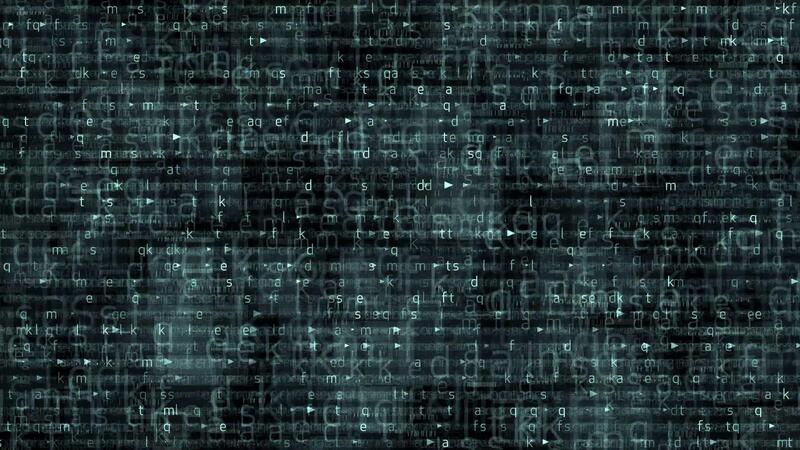 abstrakt Digital Hintergrund gefüllt mit binär Code und Englisch Charakter Code auf dunkel Hintergrund Pro Video
