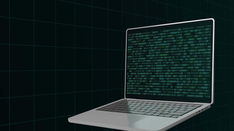 groß Daten Analyse und binär Code Skript auf Laptop. Pro Video